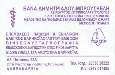 Δημητριάδου Μπρουσκέλη Βάνα: Ωτορινολαρυγγολόγος - Βελονίστρια