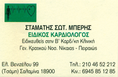 Ειδικός ΚαρδιολόγοςΔέχεται καθημερινά 18:00-20:00 με ραντεβού